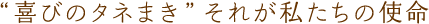 そして" 喜びのタネをまこう"という言葉に表された思想は、